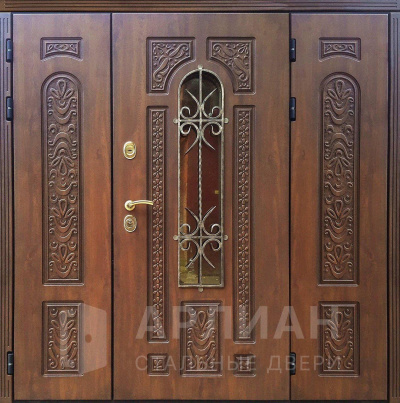 Фото «Двухстворчатая входная дверь со стеклом и ковкой №9»