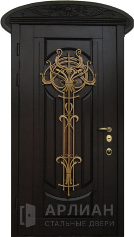 Входная арочная дверь с витражом и решеткой №419