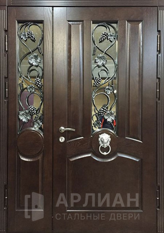 Входная парадная дверь с ковкой отделка натуральным деревом №79