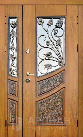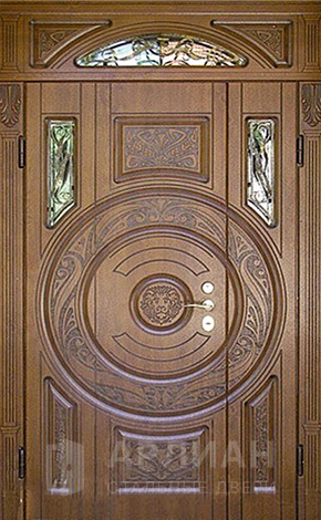 Фото «Двустворчатая входная дверь со стеклом и с витражом №76»
